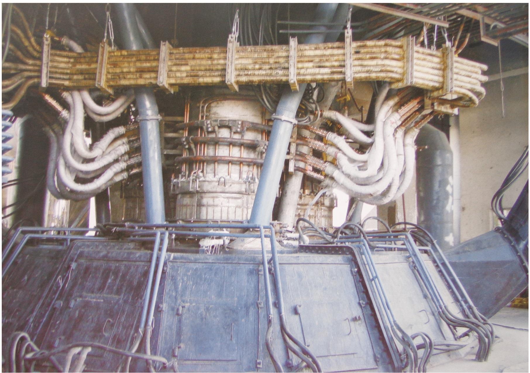 在礦熱爐中,短網是輸送低電壓、大電流電能的裝置。為使它將取自電網的能量最有效地輸入礦熱爐,應使短網具有良好的電氣特性。 因此短網載流能力大,電阻小,運行溫度低等特性。